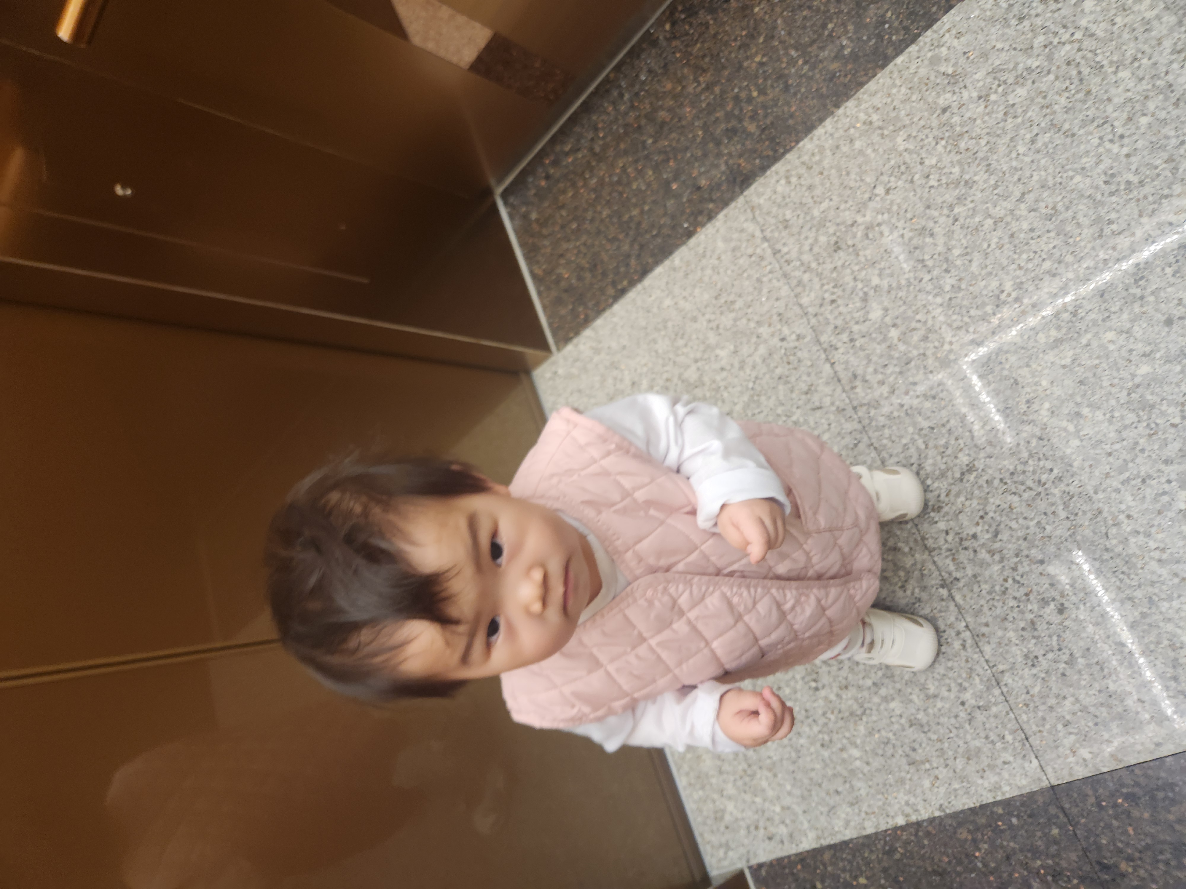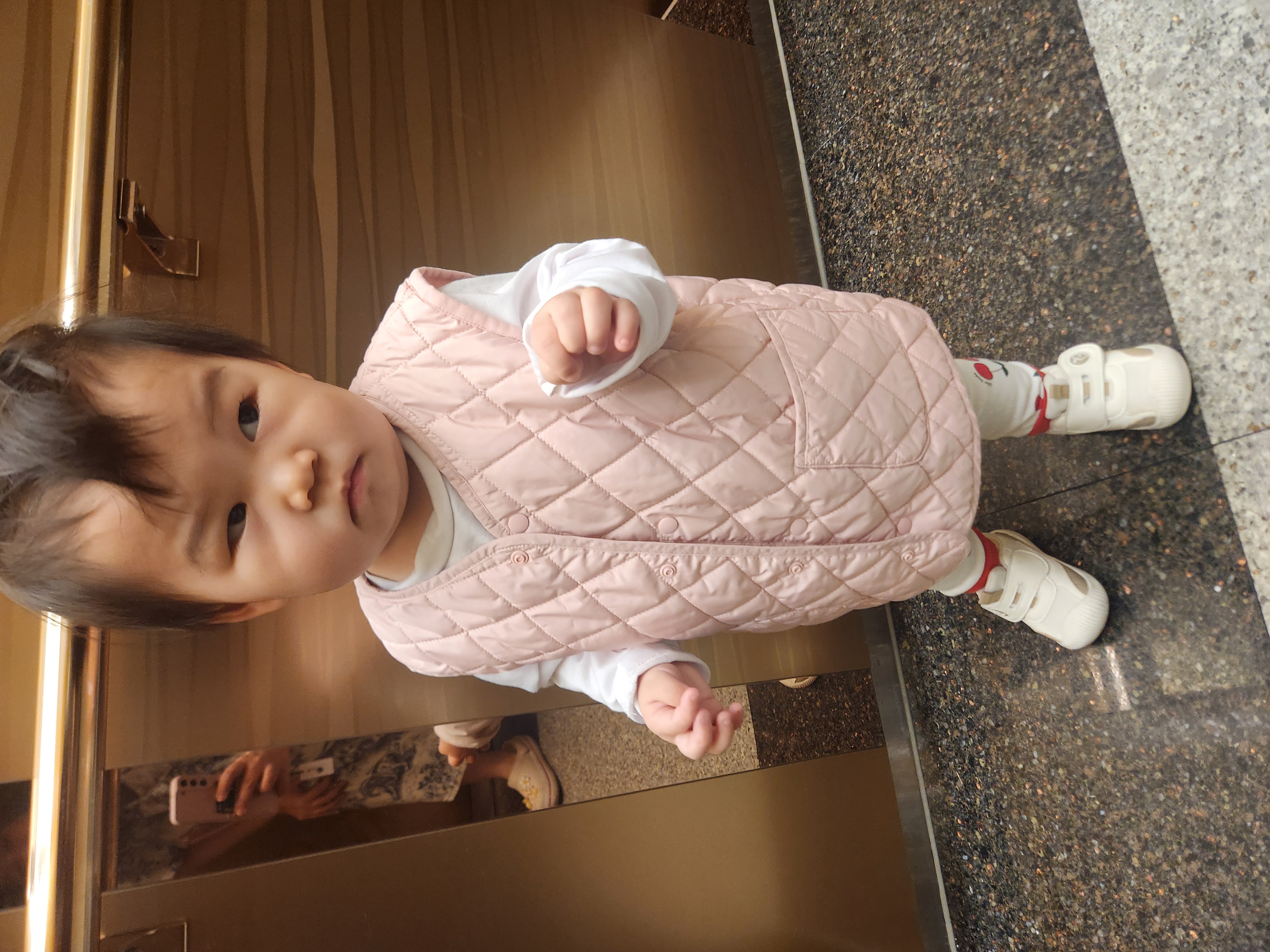 📷도련님이 사준 조끼 입고 ㅎㅎ 아침에 일어나자마자 이동중이라, 표정이 얹짢으심.